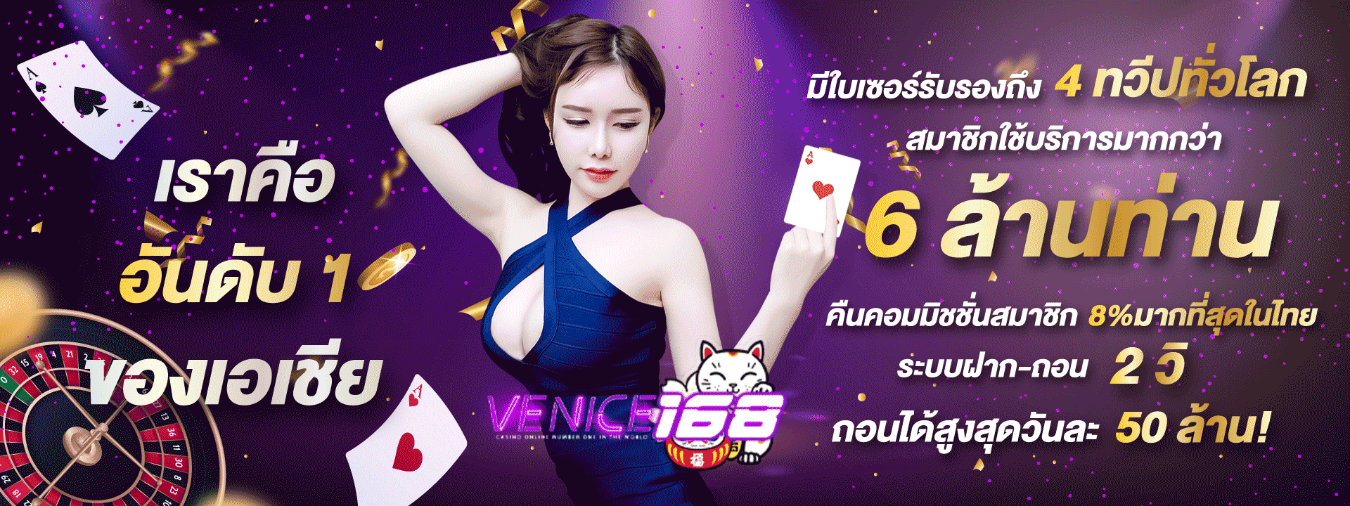 ถ้าคุณกำลังมองหาเว็บพนันออนไลน์ที่ครบครันและน่าเชื่อถือ Venice168 คือคำตอบที่ใช่สำหรับคุณ ด้วยการรวบรวมเกมพนันระดับโลกมากมายไว้ในที่เดียว ทำให้คุณสามารถเพลิดเพลินกับการเดิมพันได้อย่างไร้ขีดจำกัด ไม่ว่าจะเป็นสล็อตออนไลน์จากค่ายดังระดับโลก เกมคาสิโนสด บาคาร่า รูเล็ต หรือการพนันกีฬา - ทุกอย่างอยู่ที่นี่ครบจบในที่เดียว