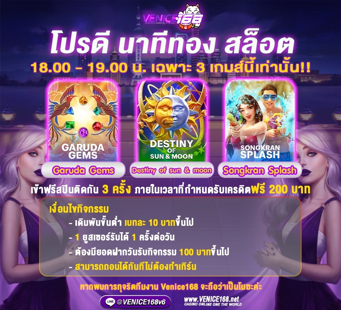ที่น่าสนใจคือ Venice168 มีโปรโมชั่นสุดพิเศษสำหรับสมาชิกใหม่ โดยมอบโบนัสต้อนรับถึง 100% ของยอดฝากแรก นั่นหมายความว่าหากคุณฝากเงิน 1,000 บาท คุณจะได้รับเครดิตเพิ่มอีก 1,000 บาททันที ทำให้มีเงินในการเล่นถึง 2,000 บาท นอกจากนี้ยังมีโปรโมชั่นพิเศษอื่นๆ อีกมากมาย เช่น คืนยอดเสีย โบนัสฝากประจำวัน และกิจกรรมแจกเครดิตฟรี